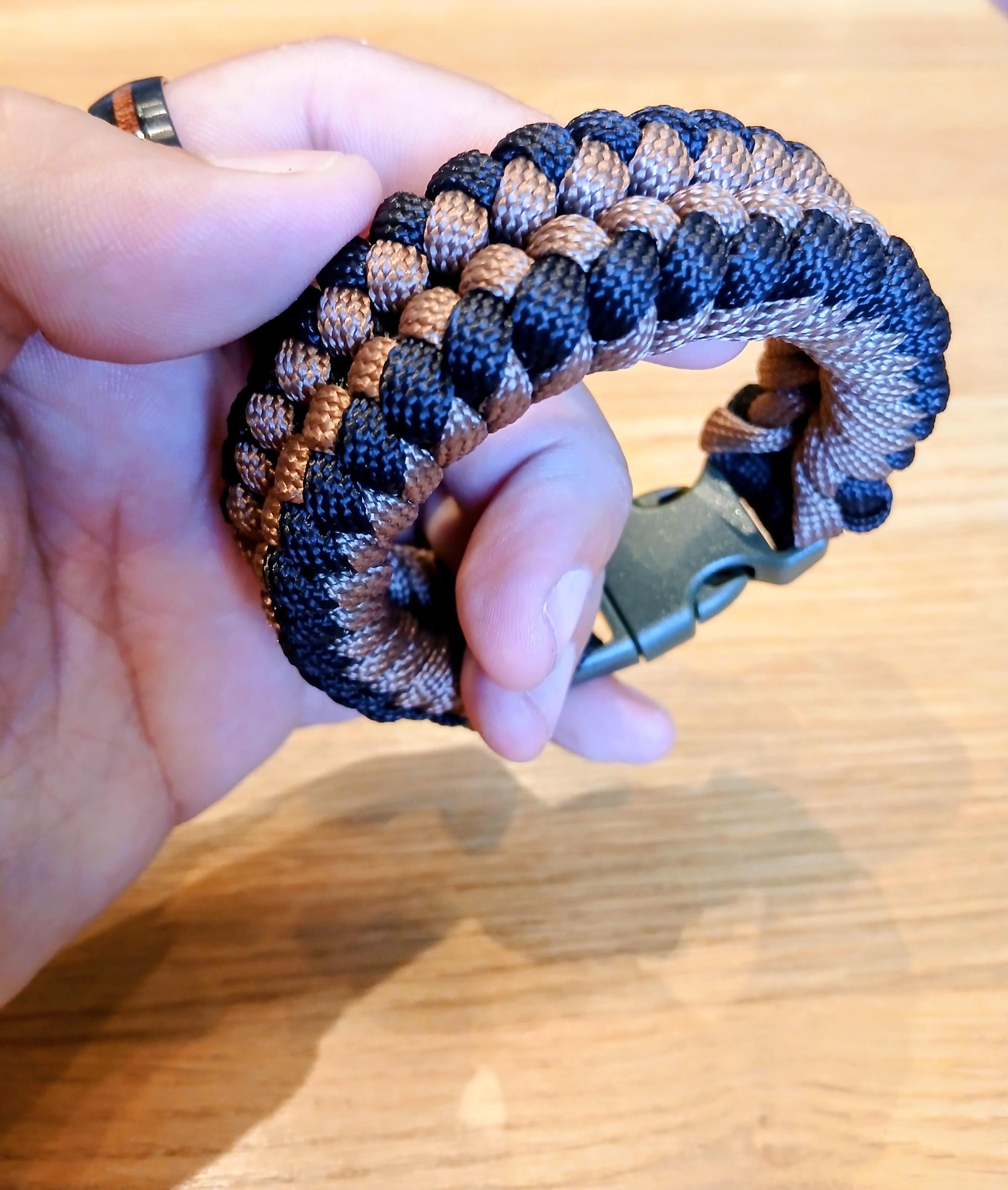 Crafted from strong 550 paracord in brown and black for a natural, grounded look