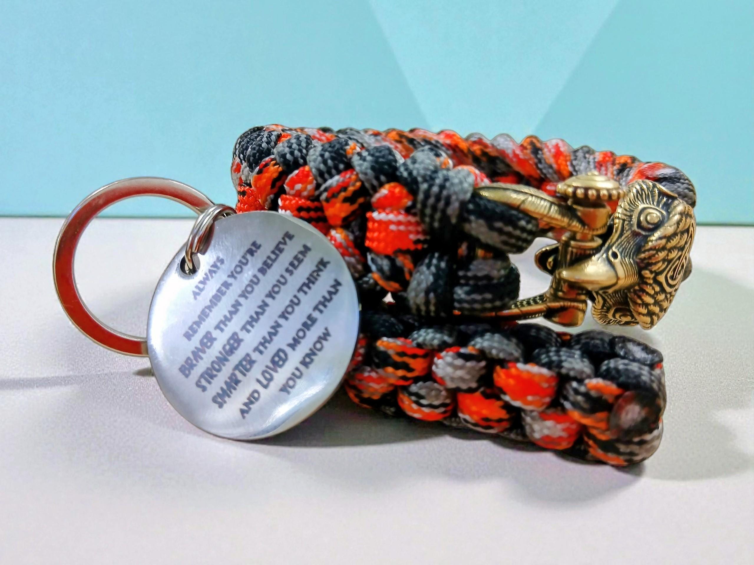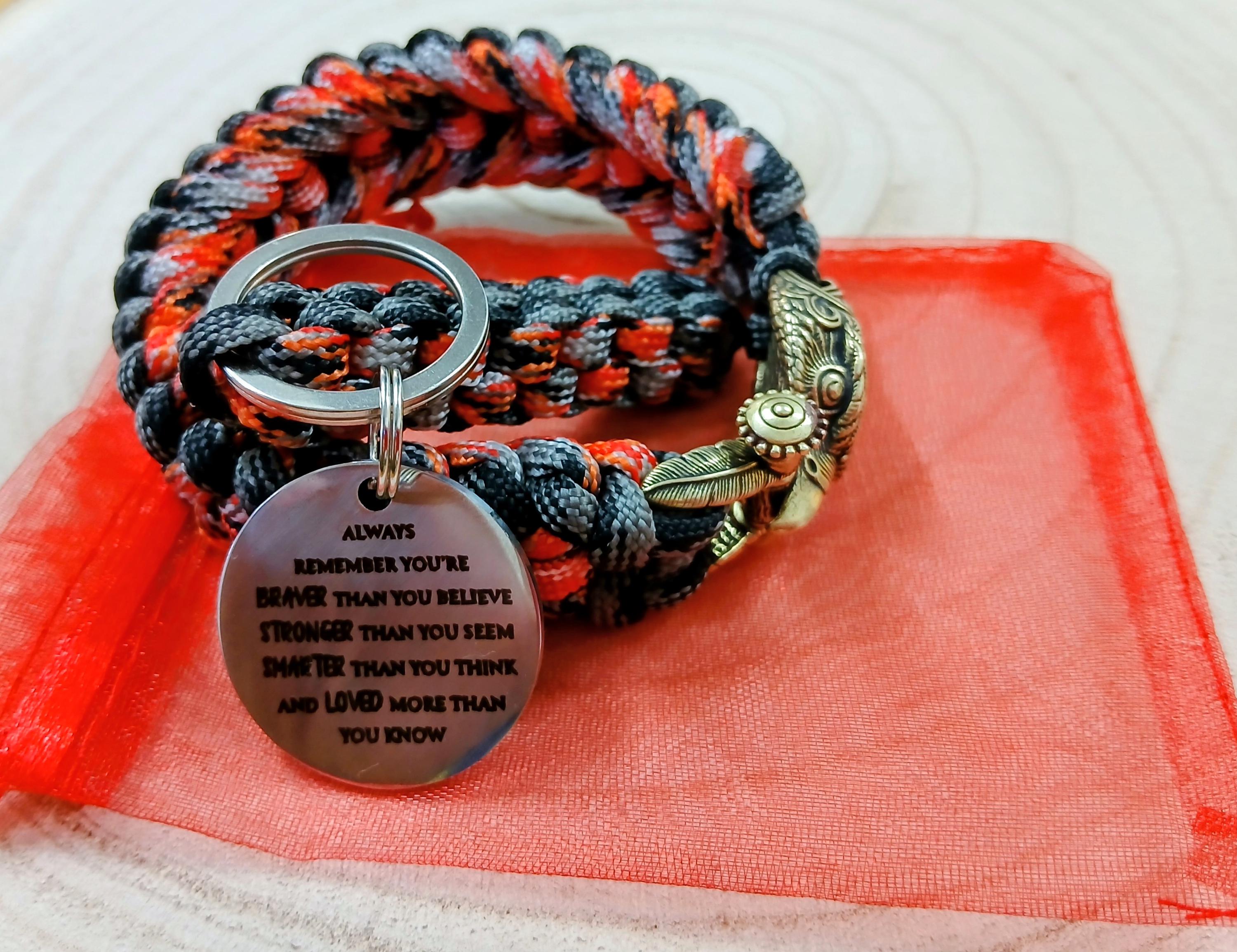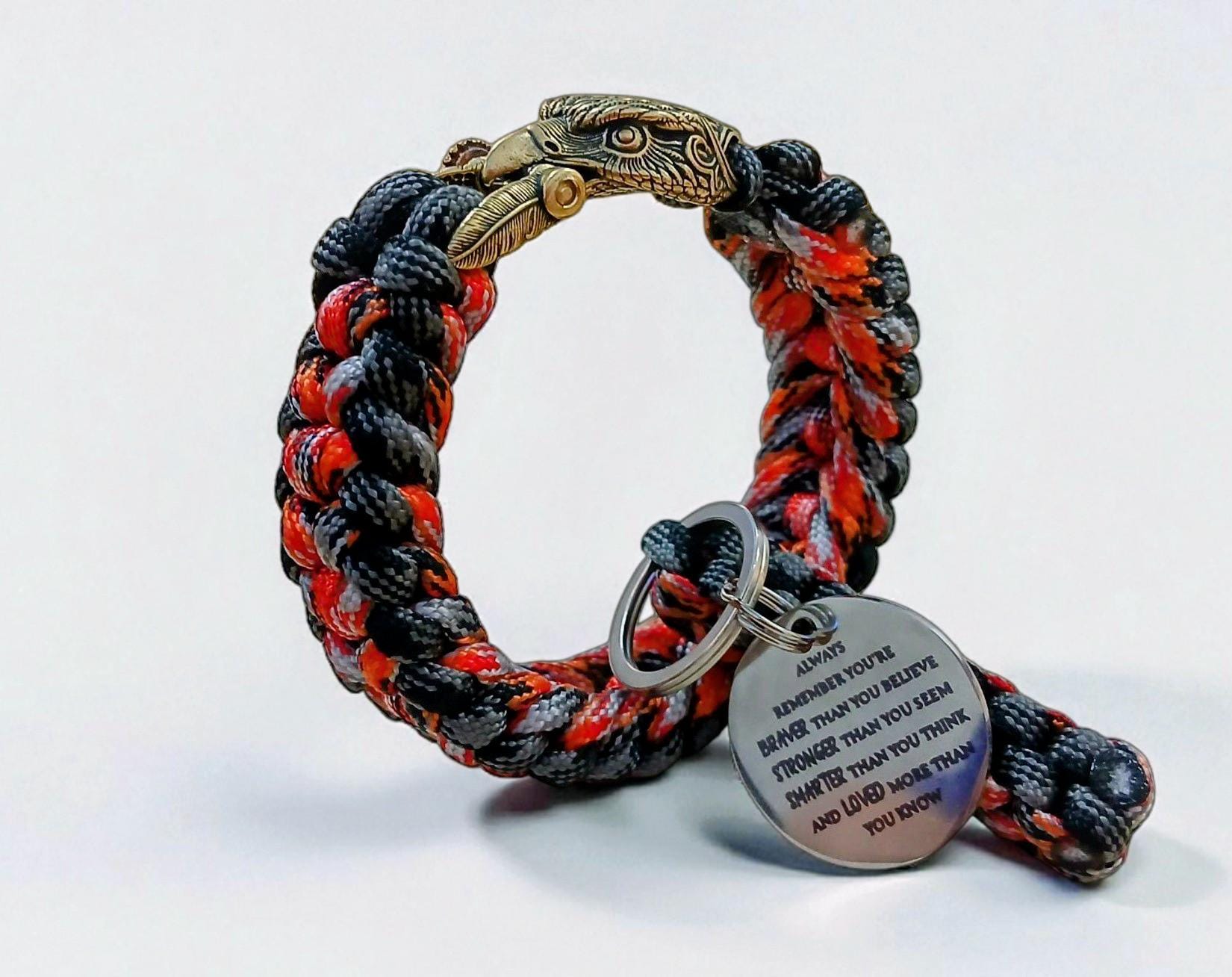 The Firewing Set – Paracord Bracelet & Matching Keyring with Eagle Clasp and Inspirational Quote