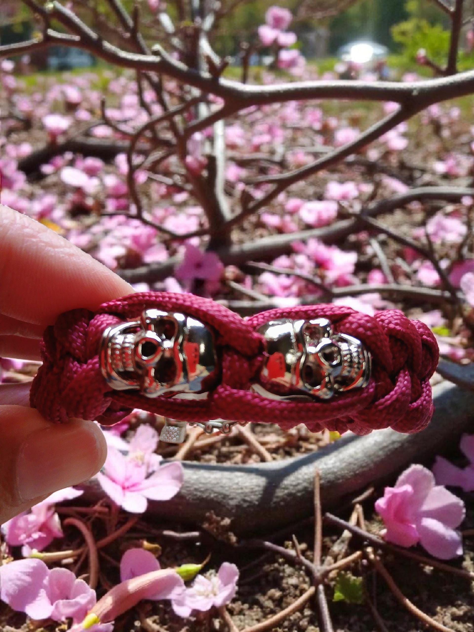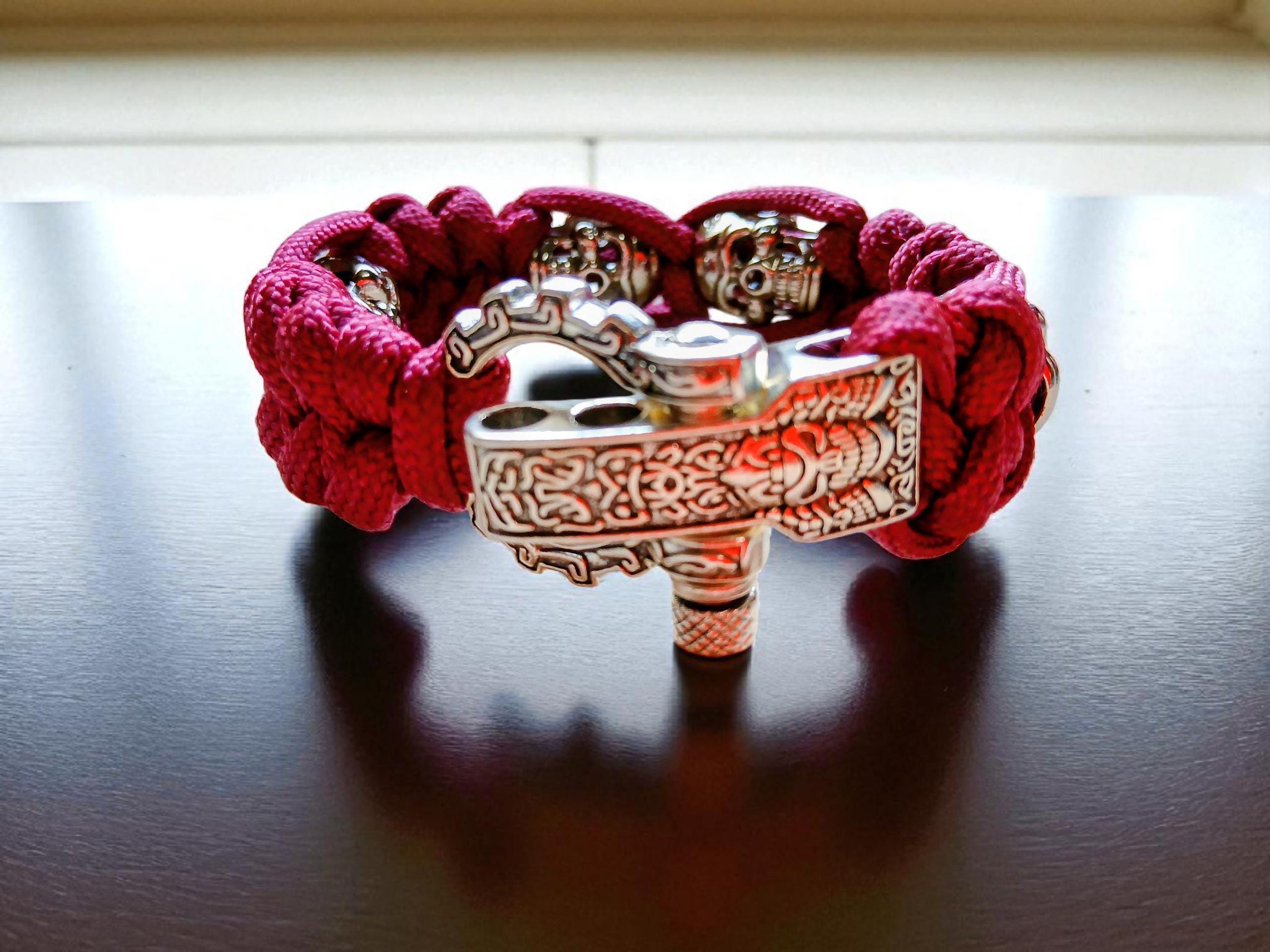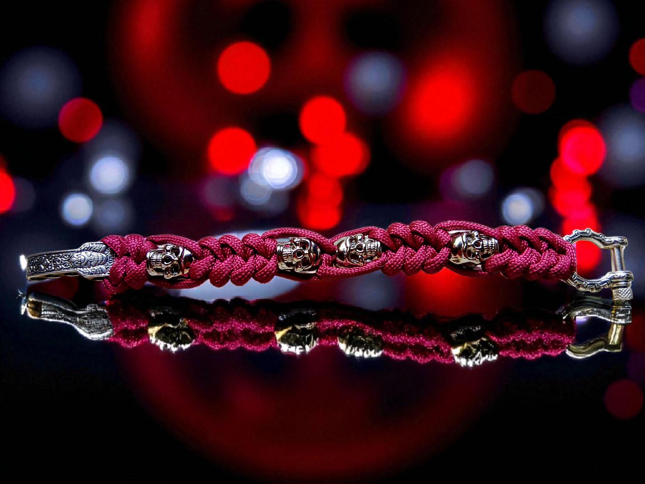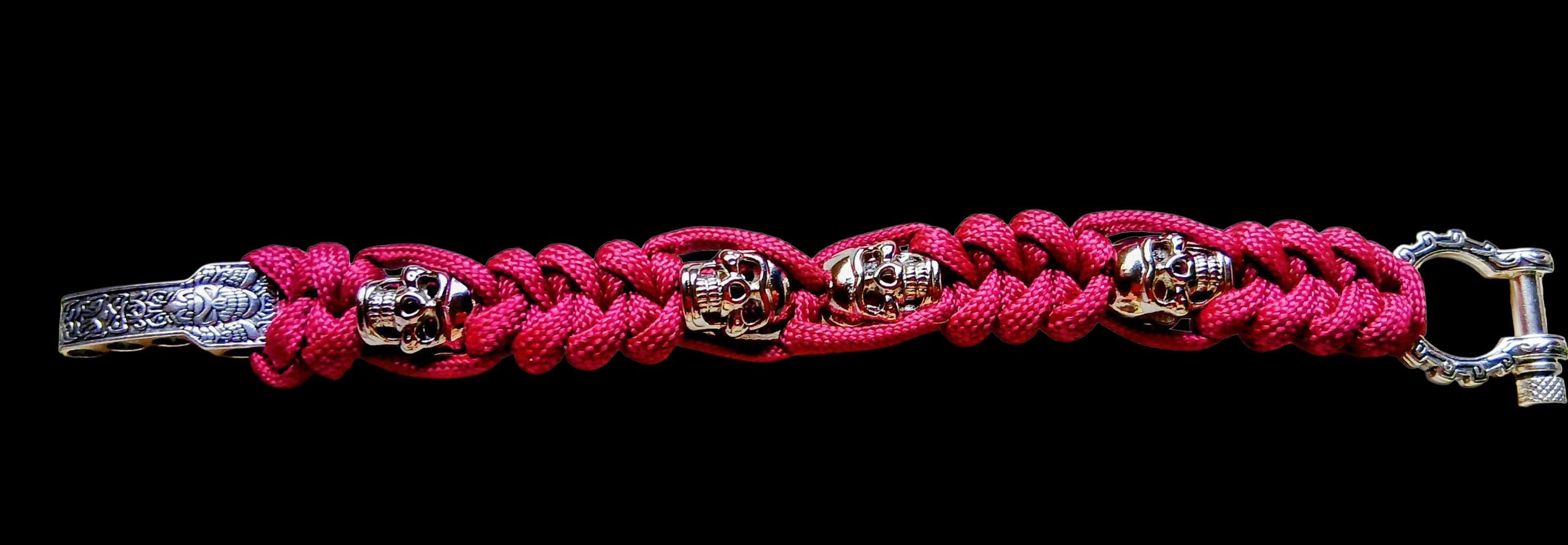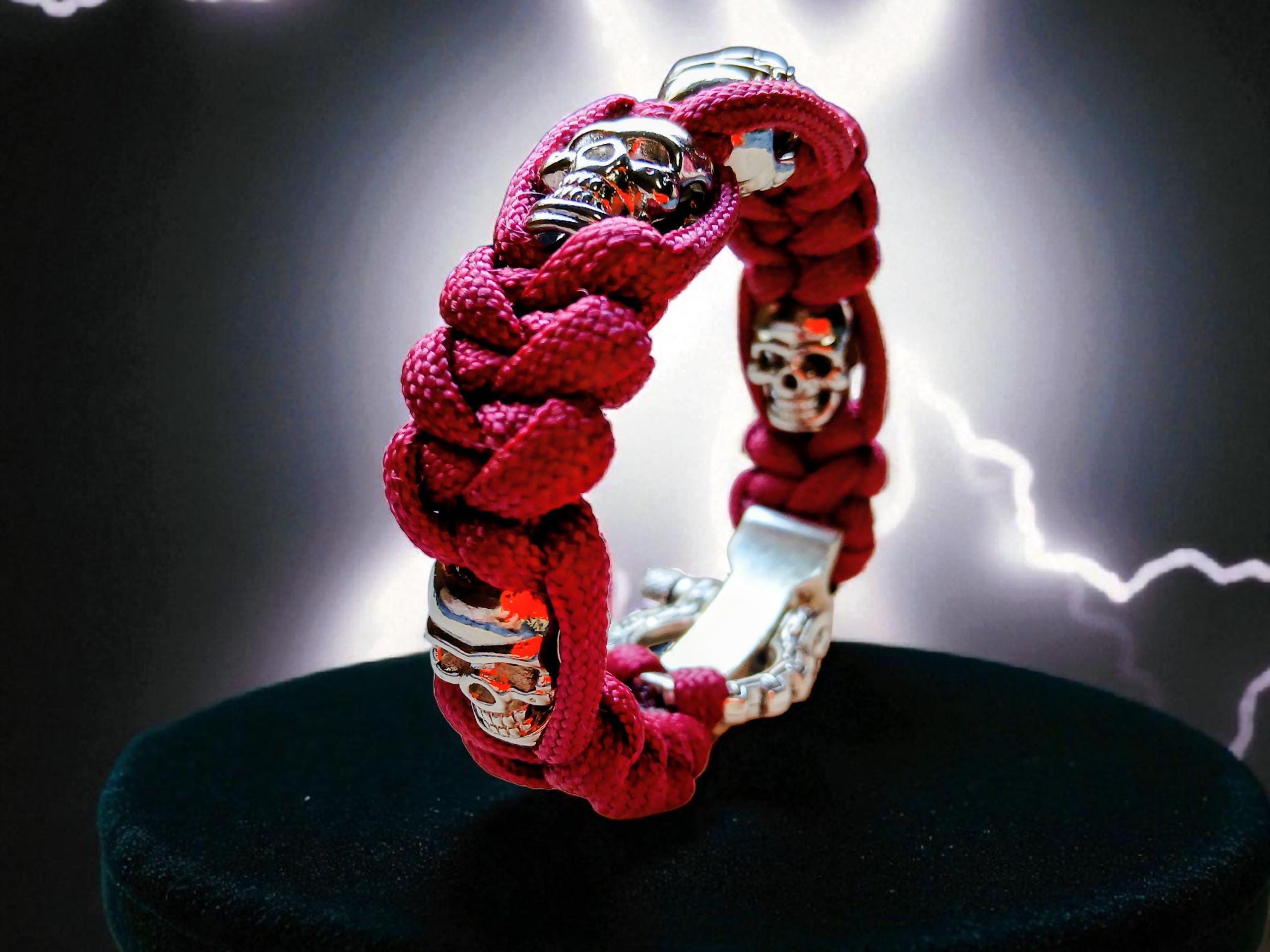 Colour: Red paracord with silver skulls and buckle