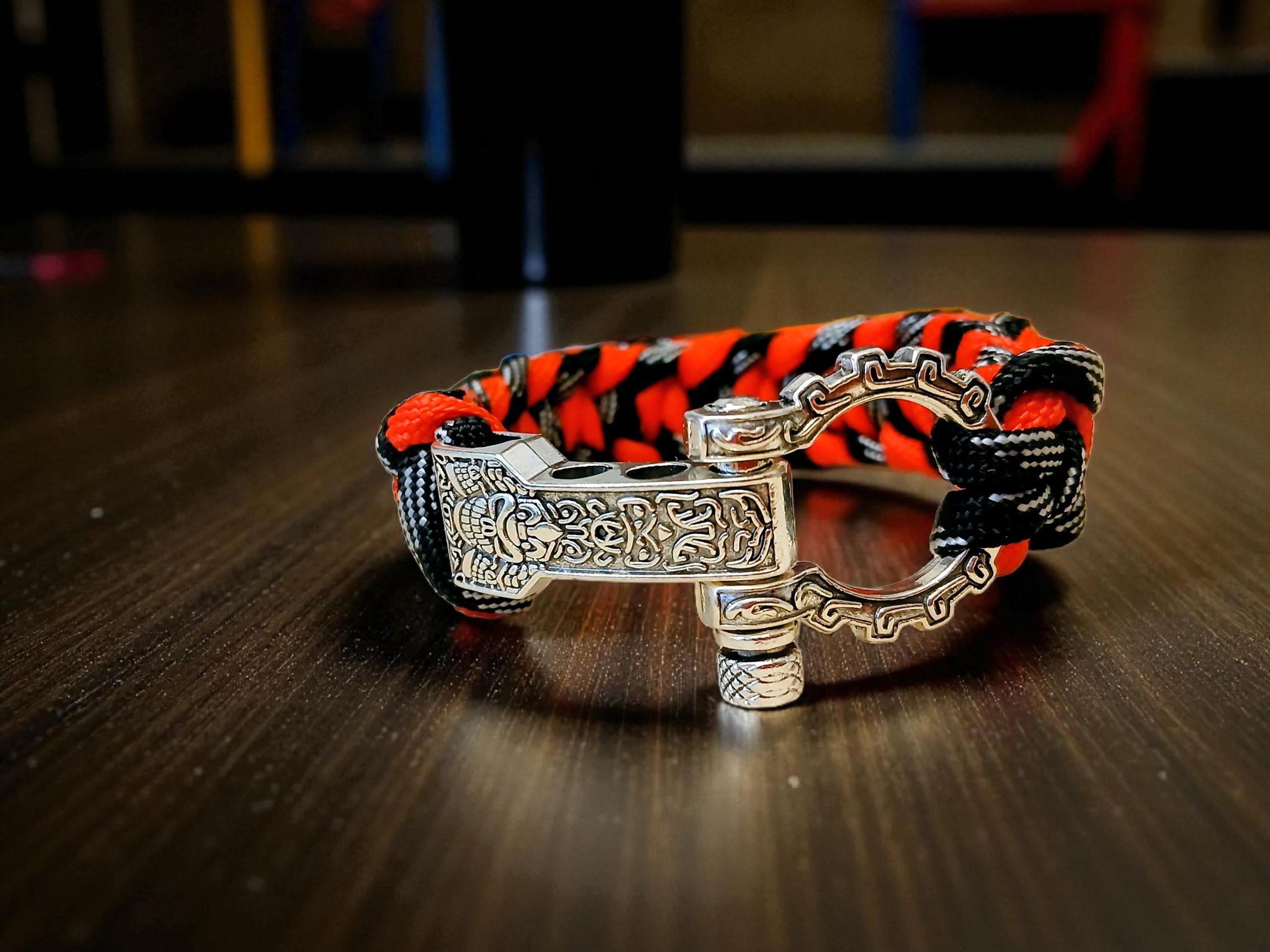The shackle clasp represents strength, loyalty, and endurance, while the woven paracord echoes the unity of purpose and protection — a nod to the Viking/Celtic spirit of resilience.