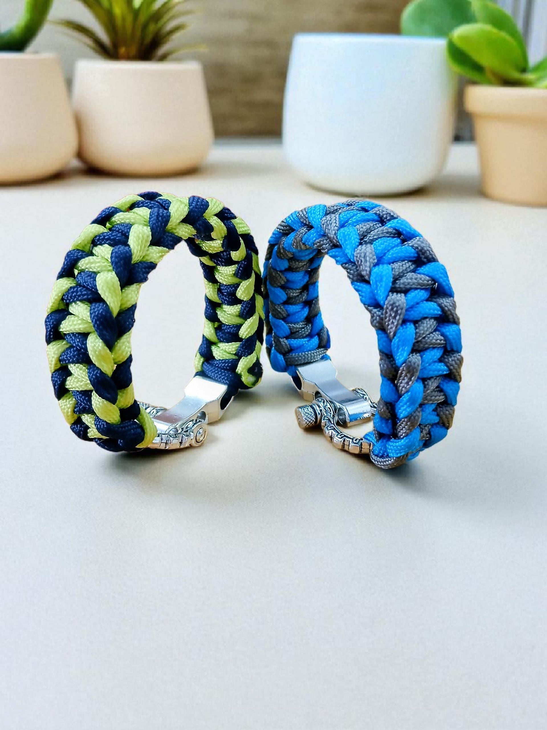 Each bracelet is handwoven from premium 550 paracord, designed to withstand the elements while adding a rugged, adventurous edge to any look.