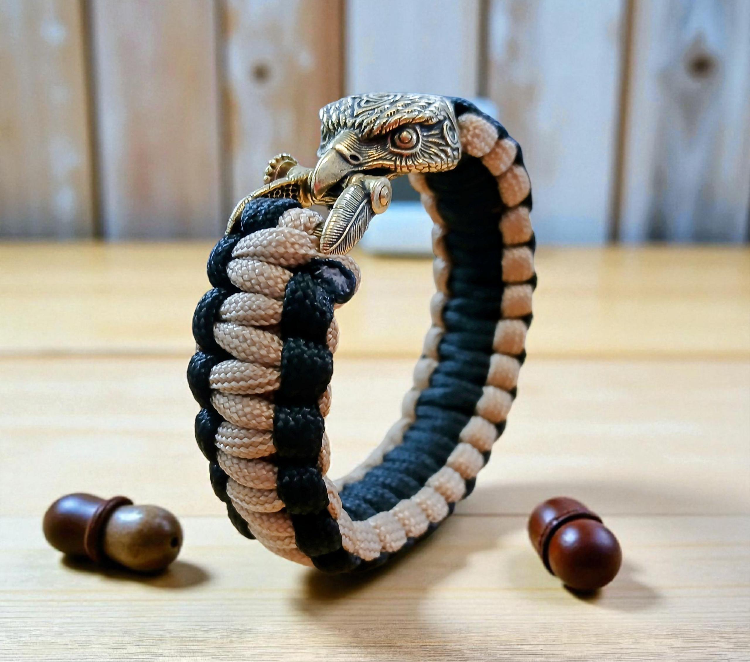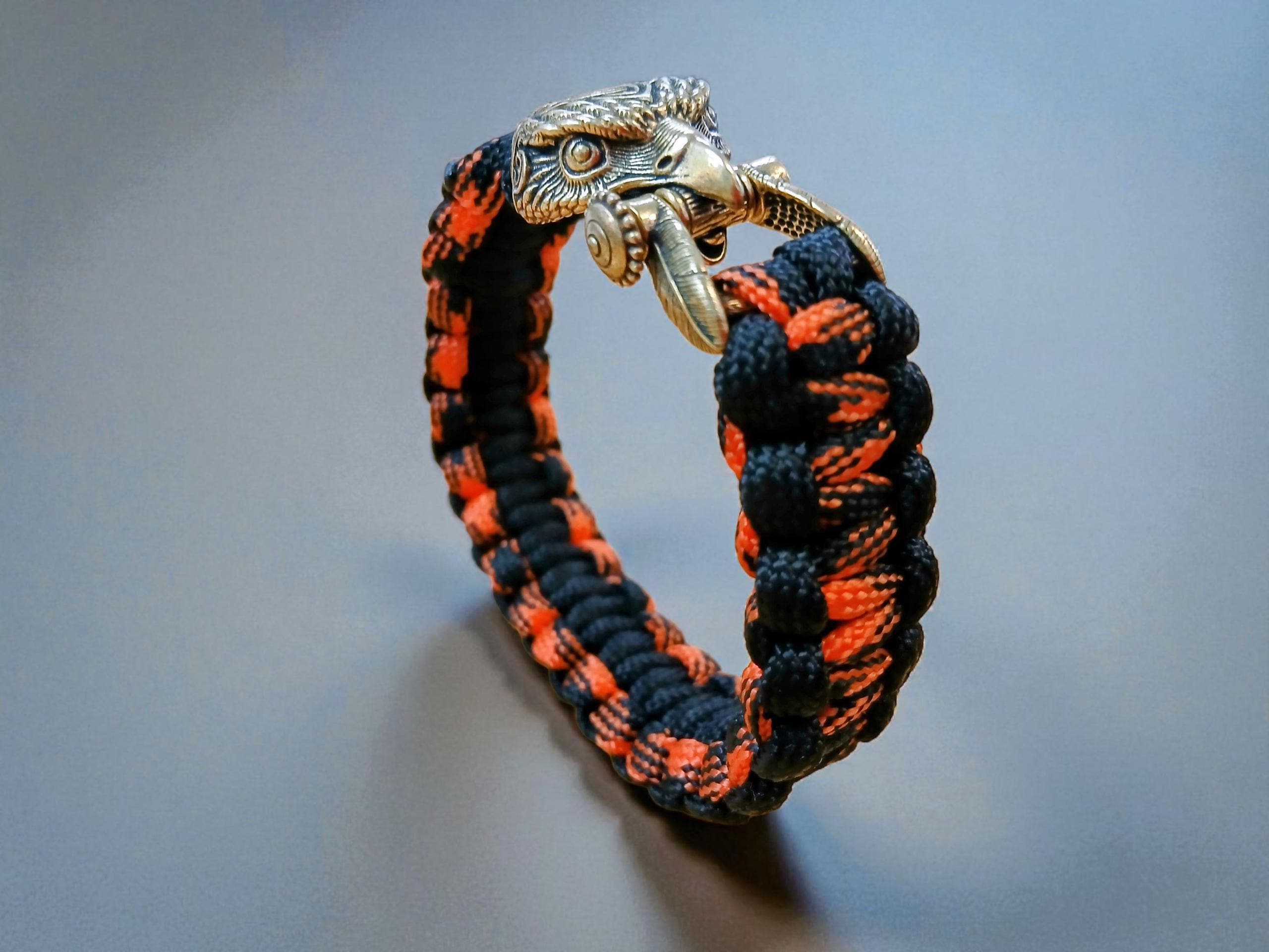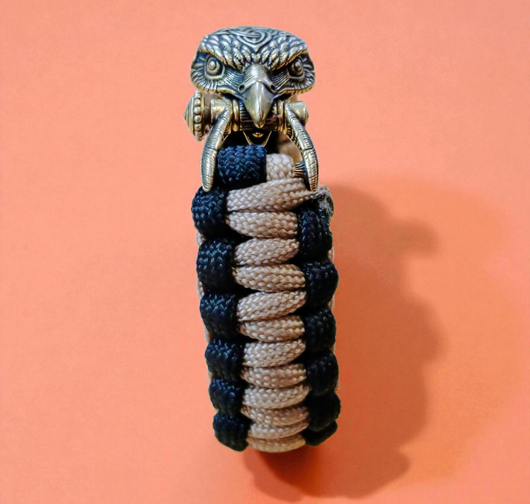 Woven from premium 550 paracord in rich black and desert sand tones, or orange and black. The Skywarden is both durable and striking. Each piece is handmade with care, offering a bold statement that stands for resilience and independence.