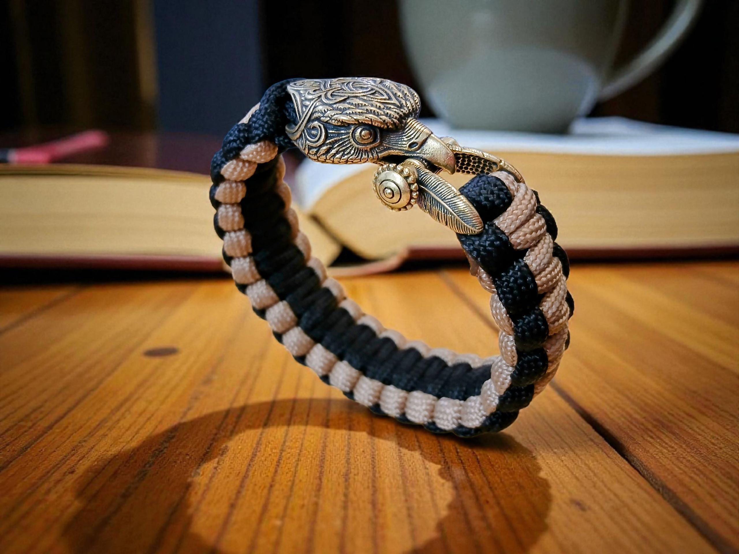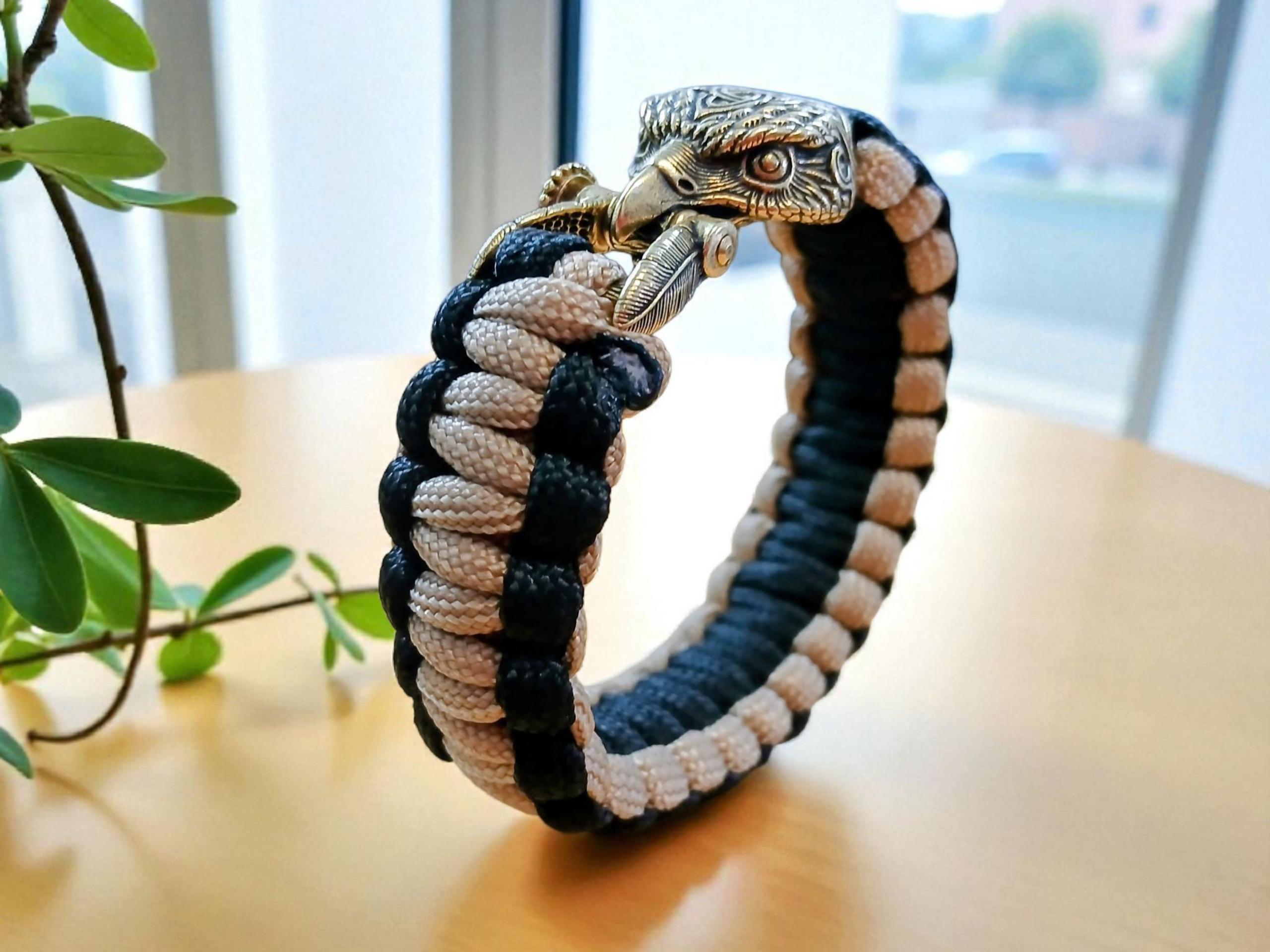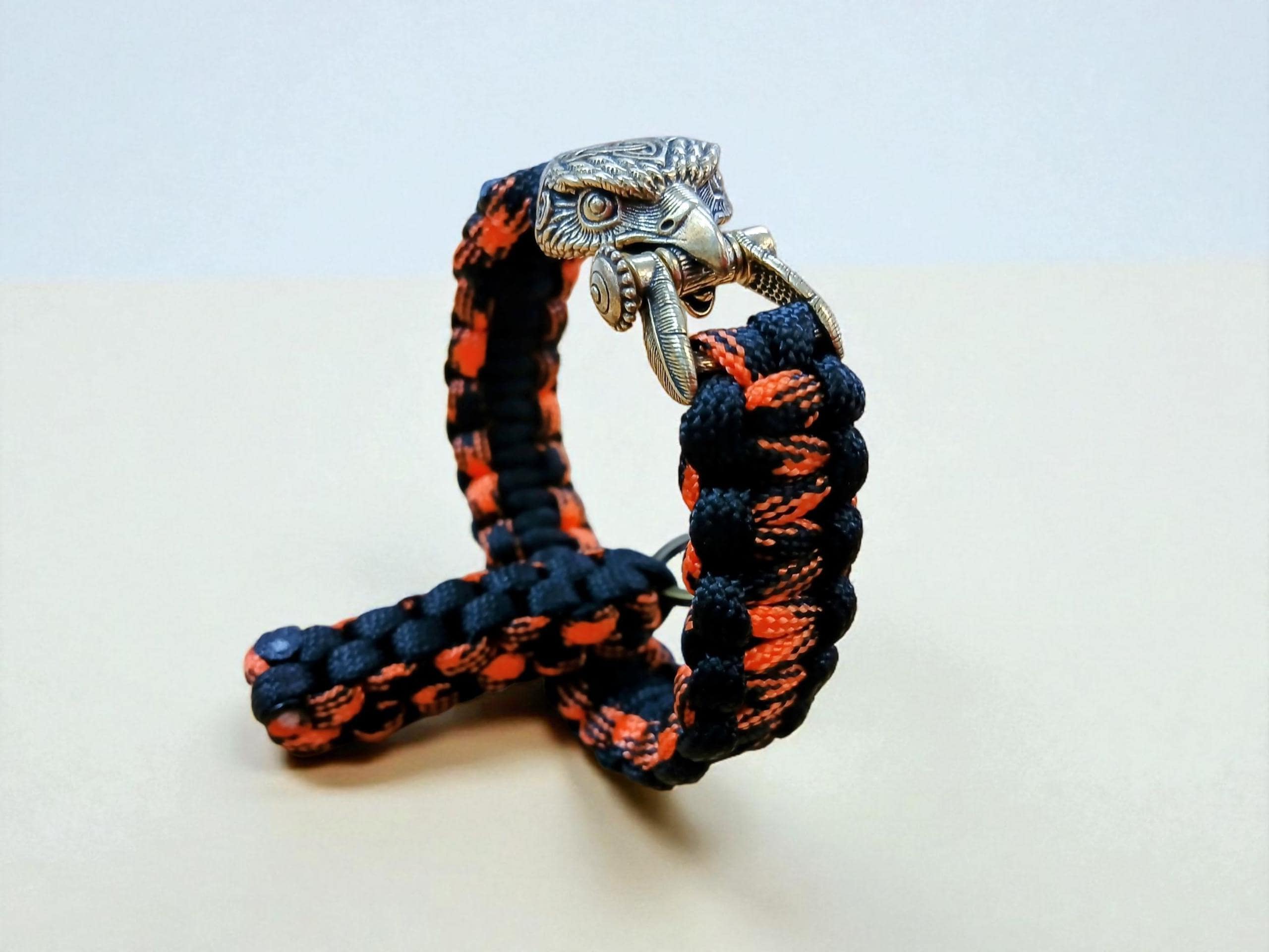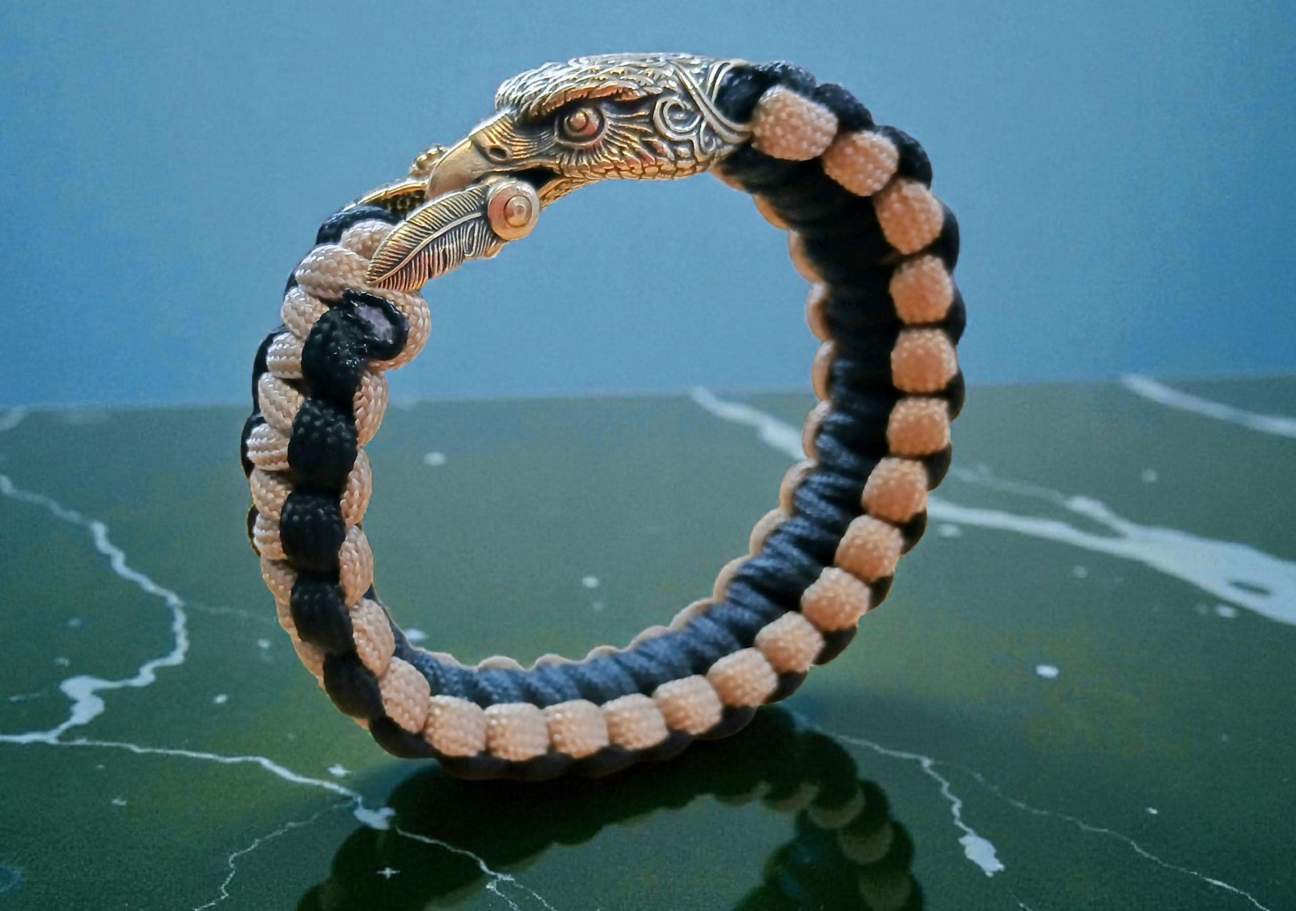 Woven from premium 550 paracord in rich black and desert sand tones, or orange and black. The Skywarden is both durable and striking. Each piece is handmade with care, offering a bold statement that stands for resilience and independence.