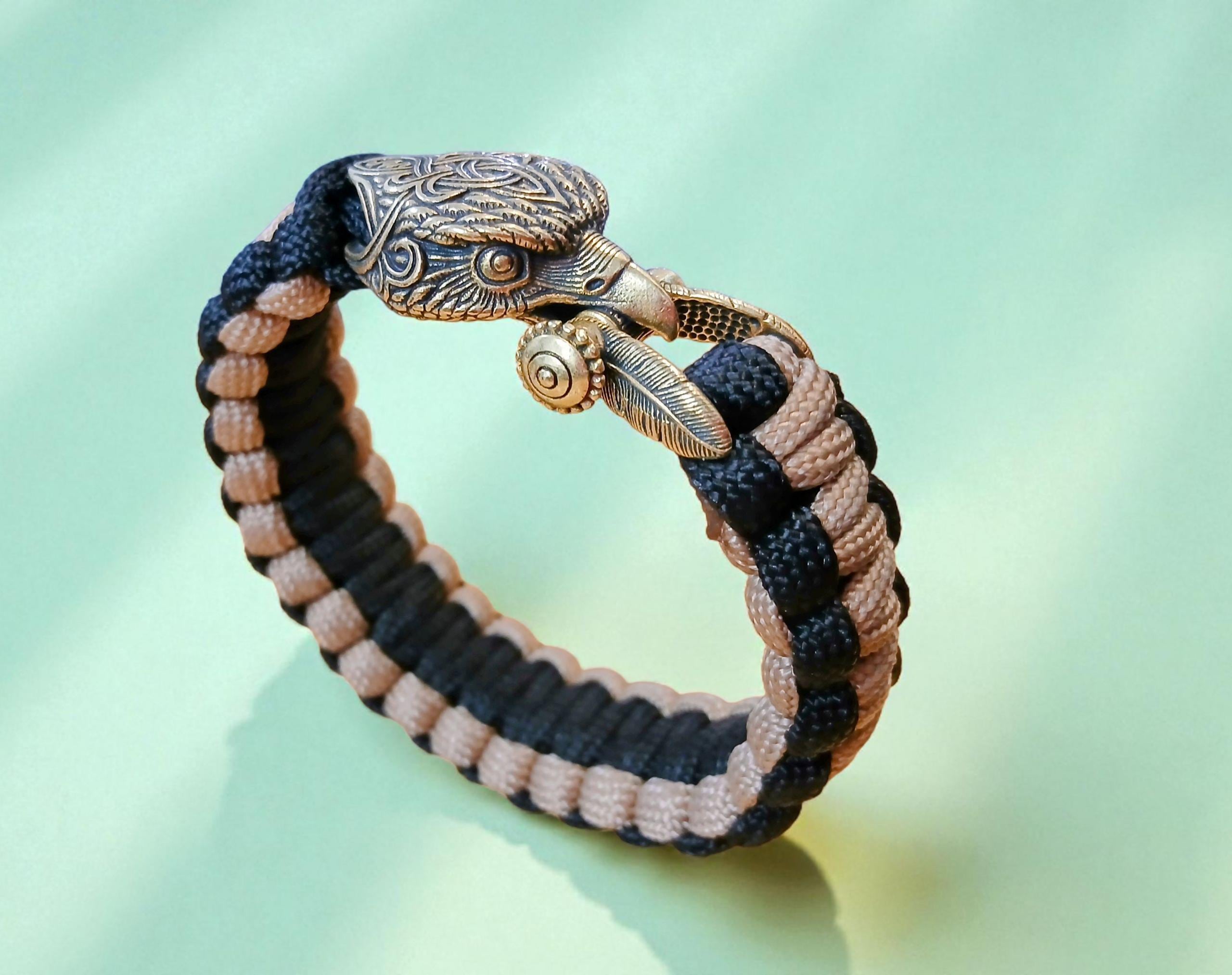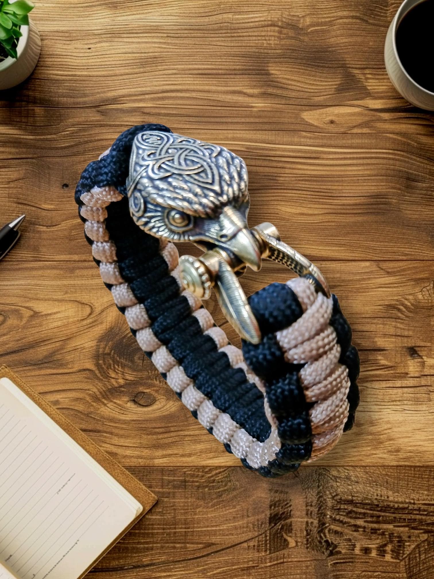 Rule the horizon with The Skywarden, a handcrafted paracord bracelet that blends strength, precision, and ancient symbolism. Featuring a detailed eagle head clasp with Celtic/Norse-style etching, this piece embodies freedom, focus, and courage — the virtues of those who never look down.
